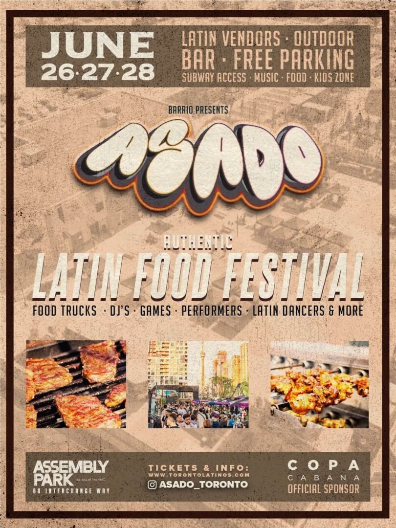 This year’s festival will feature over 50 vendors and culinary teams representing a wide range of traditions from across Latin America and the Caribbean. Top Brazilian Steakhouse in Vaughan, Copacabana, is once again the main sponsor for the event and definitely a crowd favourite. From smoky grills and street food favourites to sweet treats and refreshing drinks, Asado continues to showcase the diversity of Latin cuisine in one vibrant setting.