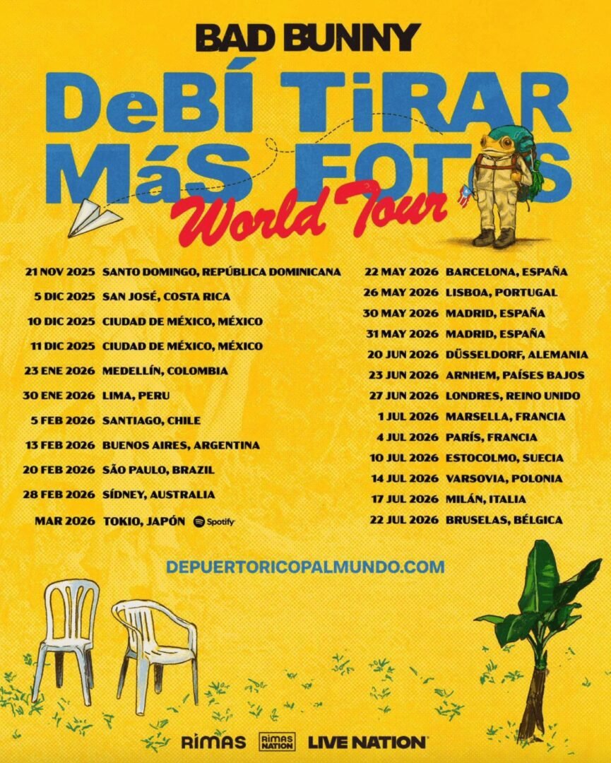 Bad Bunny is officially back on the road, and this time he’s going bigger than ever. The global superstar has unveiled his DeBí Tirar Más Fotos World Tour, set to run from late 2025 into early 2026, and it’s already shaping up to be one of the most talked-about Latin music tours in the world.