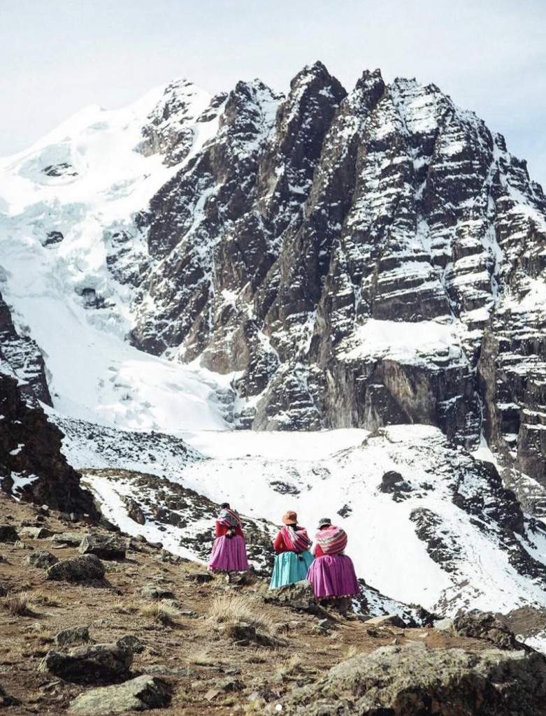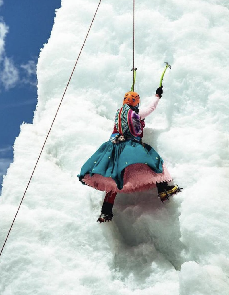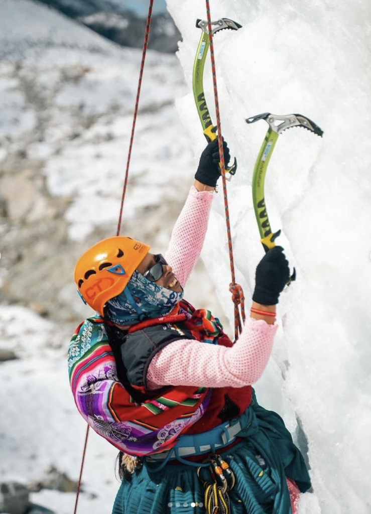 Cecilia Llusco (@cecilia_cholita_escaladora) is another of the members and leaders of the group. Cecilia says that she inherited her passion for mountain climbing from her father, who made a living as a trekking guide. Today, her sister Zenobia Llusco and her two children are also mountaineers and often accompany her on her expeditions.