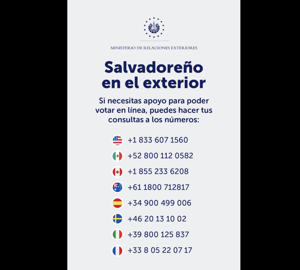 El Salvador has provided guidance to Salvadorans living abroad so that they can fully exercise their right to vote, both in person and online.